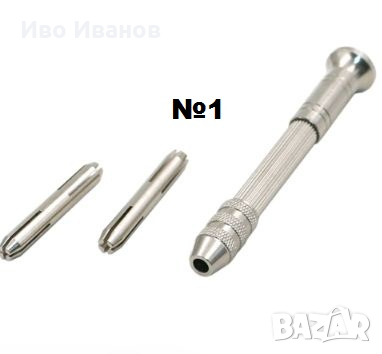 №1 Мини-дрелката за свредла до 3 мм има за цел да облекчи пробиването на миниатюрни отвори при сглобяване на модели , макети и др. Тя от три части, навиващи се една. Дрелката е с метален корпус, с накатка на мястото, където се хваща при работа. В комплекта са включени 5 броя свредла от 0.6 до 2 мм (0.6 мм 0.8мм 1.0 мм 1.5 мм 2.0 мм ). Размерите на дрелката - 93 х 10 мм. Цена- 14лв.