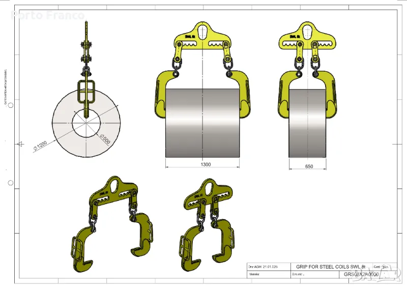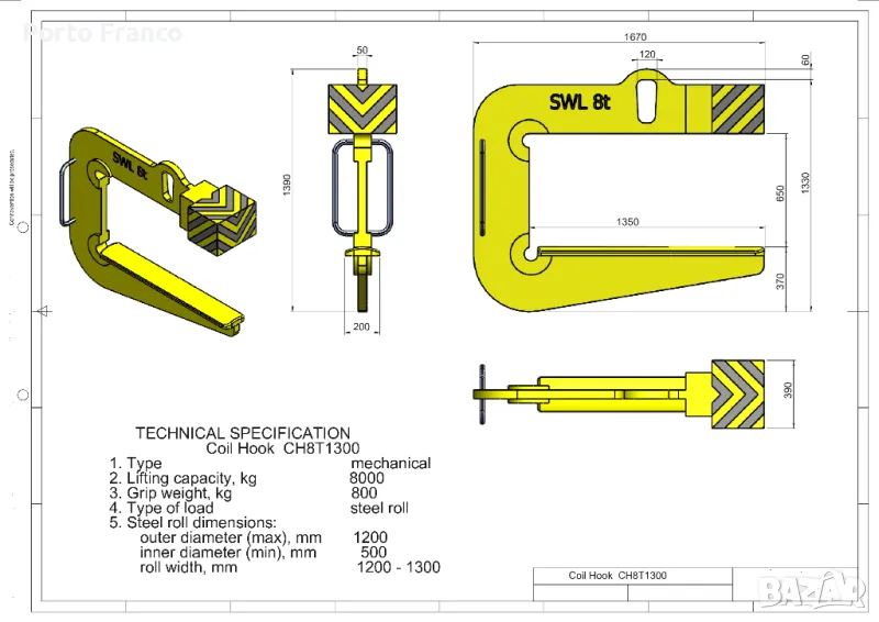 Специални и стандартни товарни приспособления за рулони, ламарина, катанка,штрипс ,както и нестандартни товари и по поръчка на клиента.
