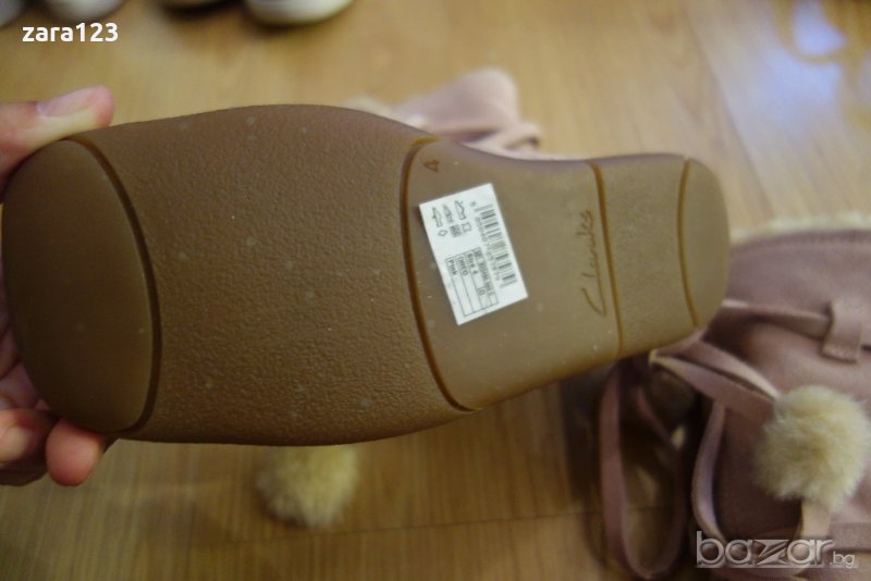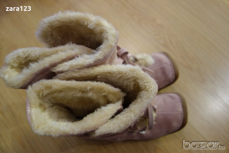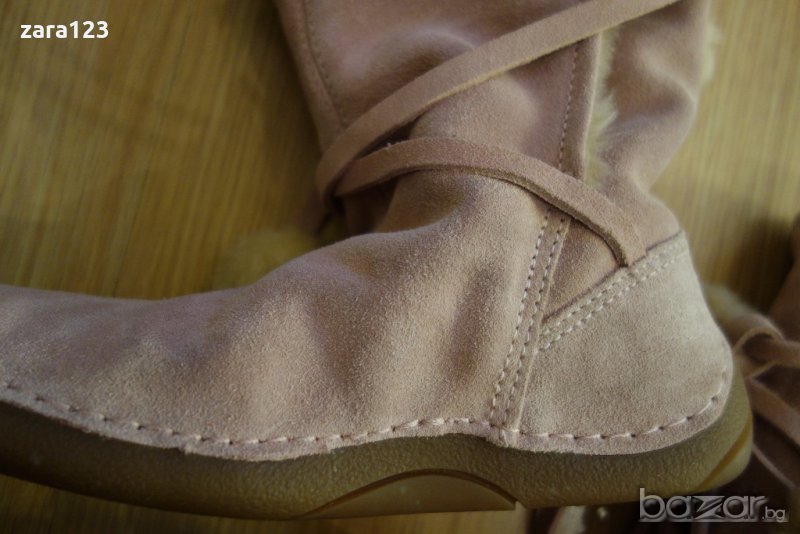 Красиви велурени ботуши Кларкс. Цветът е светло розово/ пепел от рози. Отвътре са мекички и топли. Връзват се с връзки. Доколкото успях да измеря стелката е 22,5см, а цялата подметка 24,5см