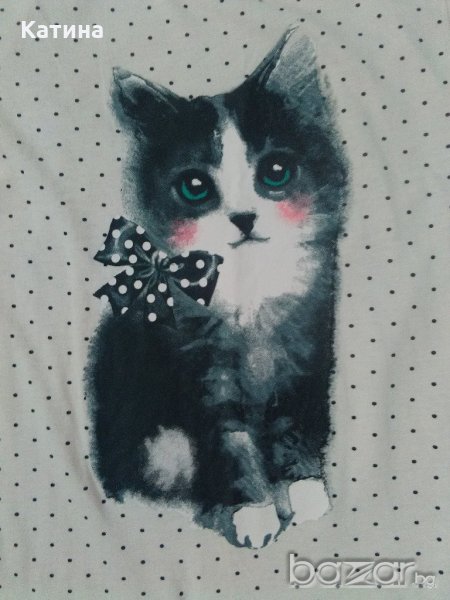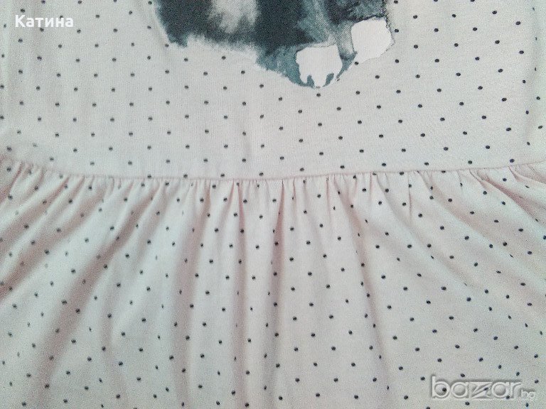 Рокля в цвят розова пудра на малки черни точици.Сладък принт на коте.Размер на етикета 134-140 см.,8-10 год.Нова,само е изпрана.