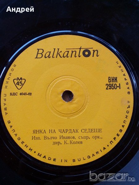 Грамофонна Плоча Балкантон,Вълчо Иванов,Димитрина Кунева, снимка 1 - Антикварни и старинни предмети - 18696136 Грамофонна Плоча Балкантон,Вълчо Иванов,Димитрина Кунева, снимка 2 - Антикварни и старинни предмети - 18696136 Грамофонна Плоча Балкантон,Вълчо Иванов,Димитрина Кунева, снимка 3 - Антикварни и старинни предмети - 18696136 1/3