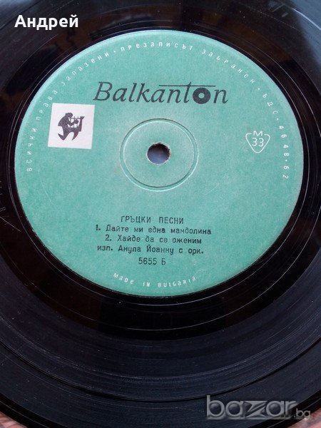 Грамофонна Плоча Балкантон,Гръцки песни, снимка 1 - Антикварни и старинни предмети - 18696175 Грамофонна Плоча Балкантон,Гръцки песни, снимка 2 - Антикварни и старинни предмети - 18696175 Грамофонна Плоча Балкантон,Гръцки песни, снимка 3 - Антикварни и старинни предмети - 18696175 Грамофонна Плоча Балкантон,Гръцки песни, снимка 4 - Антикварни и старинни предмети - 18696175 1/4