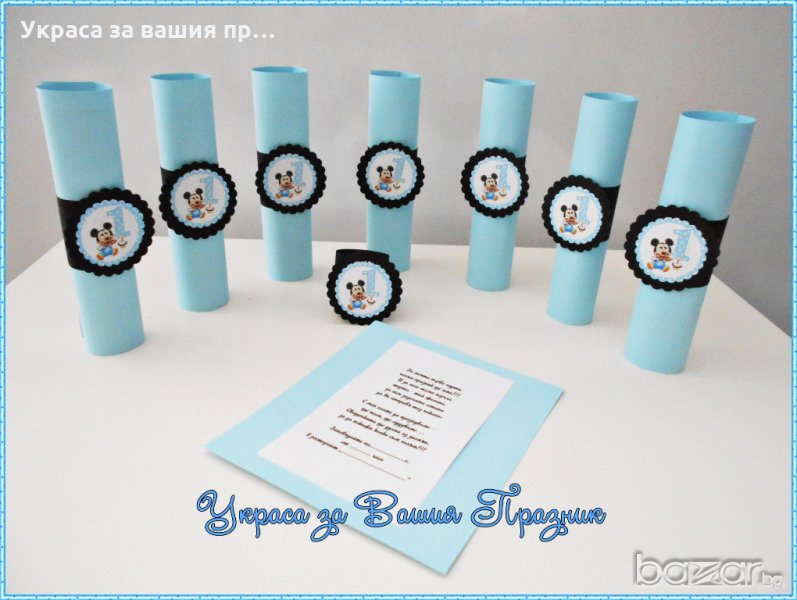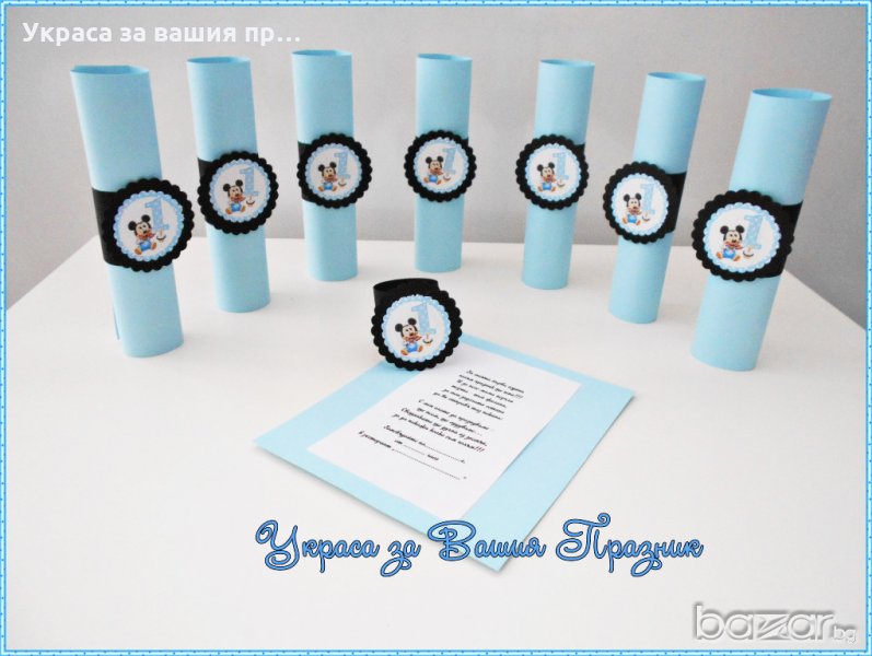 покани за детски рожден ден с Мики Маус тип папирус → Обява 18705007