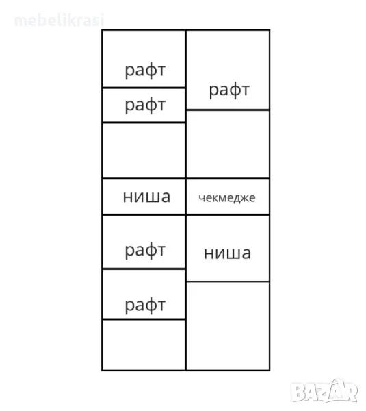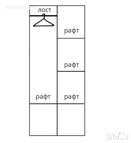 Размерите следват последователността: ширина/дълбочина/височина, в см.