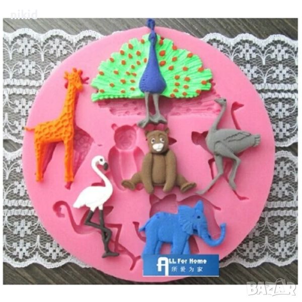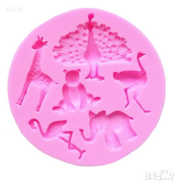 Зоо животни Жираф щраус фламинго слон мечка паун силиконов молд форма украса декор фондан шоколад → Обява 18751441