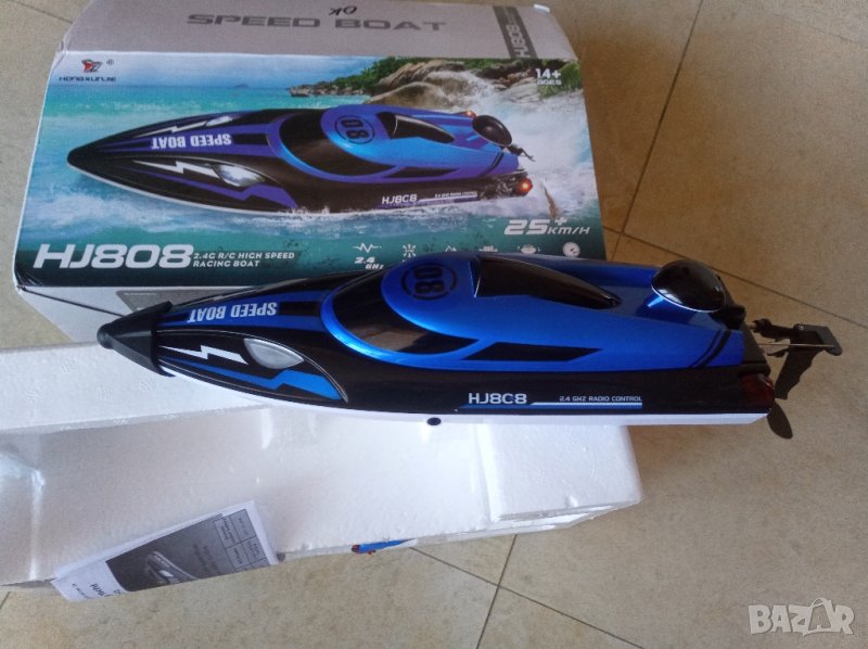 31см радиоуправляема лодка развиваща бързо до 25км/ч. Лодката е с акумулаторна 3,7V Li-Po батерия -600mA , с водно охлаждане на ел. двигателя