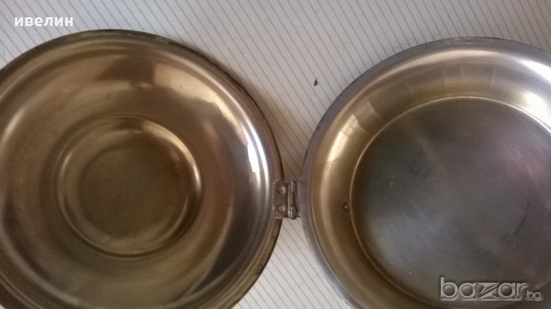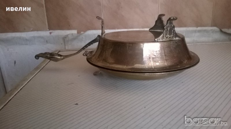 посребрен викториански съд-тиган с капак.месингов корпус.дължина 24см,диаметър на тигана 16см.