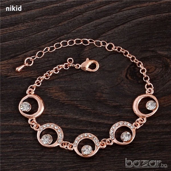 дамска златиста гривна кръгове полумесеци с камъчета → Обява 18767656