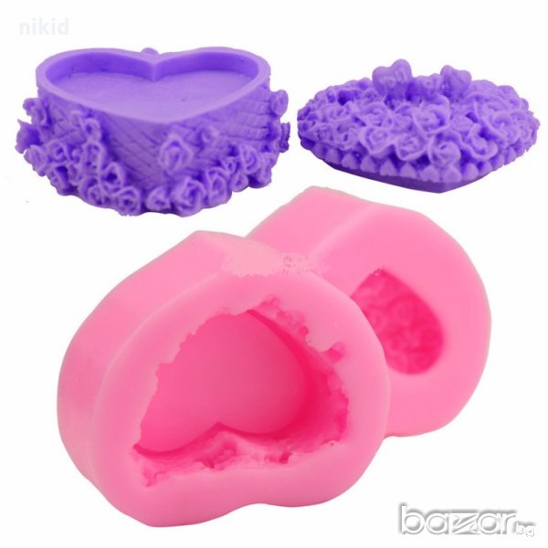 3D 2 части сърце за направа на кутийка силиконов молд форма декорация украса фондан торта мъфини → Обява 18777214