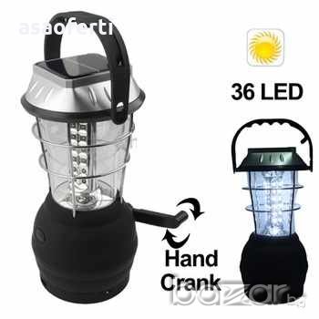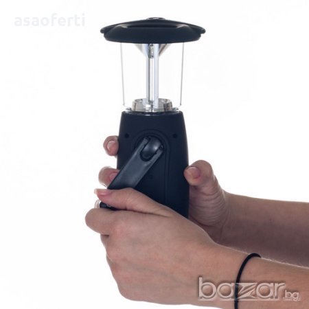 Соларна къмпинг лампа LS-360 с вграден ръчен генератор за зареждане на акумулаторните батерии.