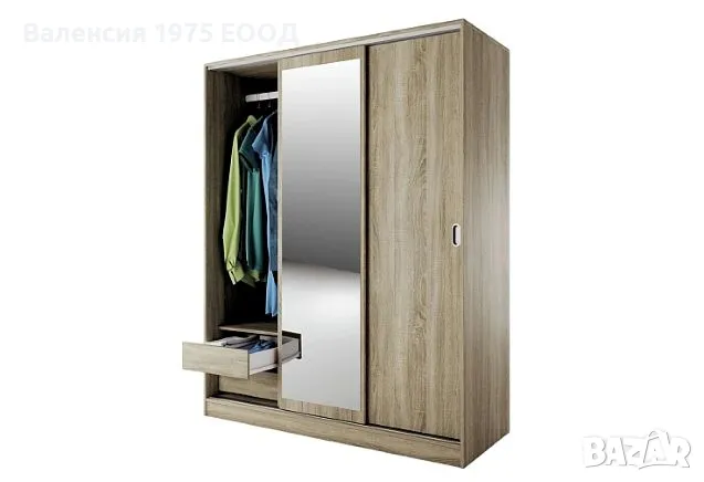 Гардероб с плъзгащи врати, огледало и вътр. чекм. Сити 1006 сонома,орех или комбинация бяло/ арвен → Обява 18790429