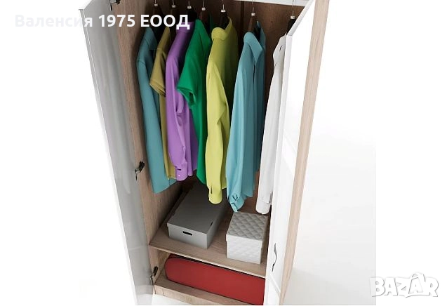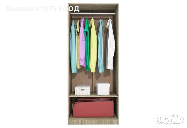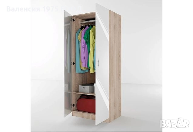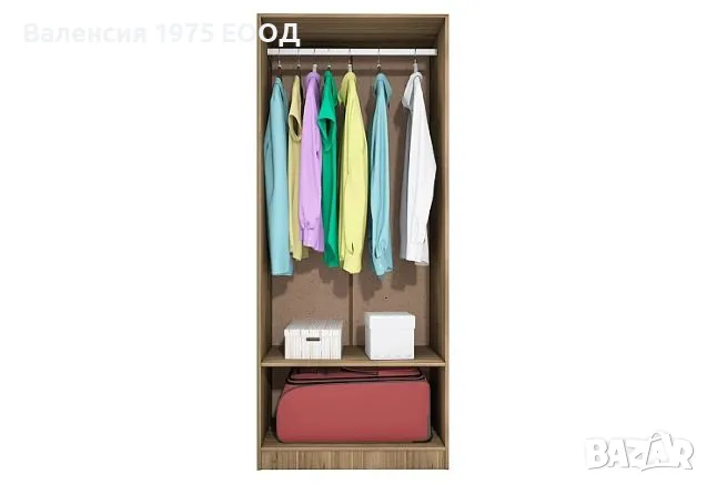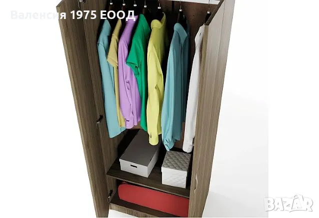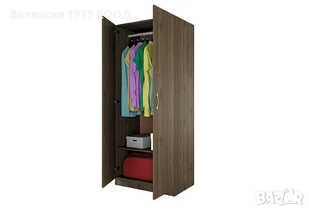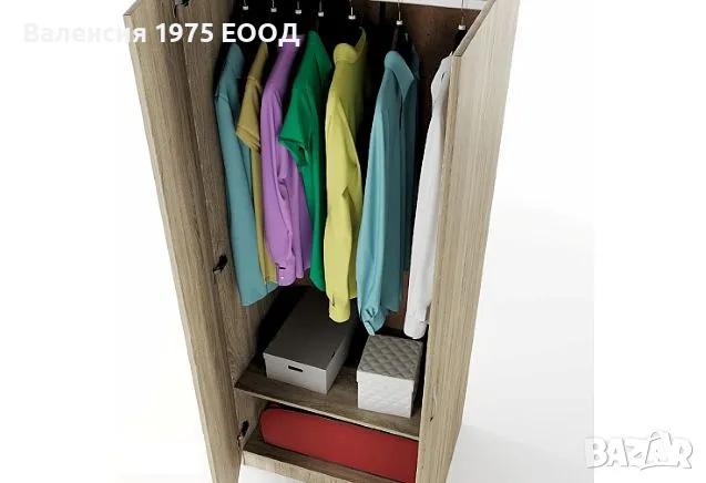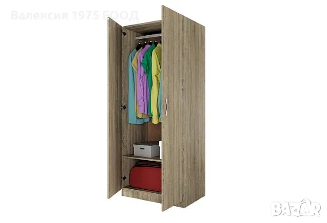 Двукрил гардероб с рафт и лост за закачалки.