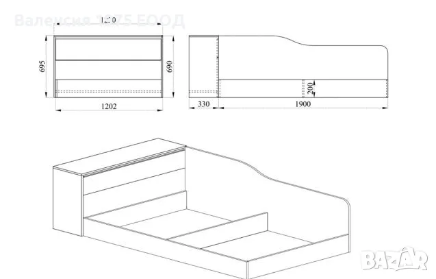 Размери: 122/ 223,5/ Н71 см( височина на касата 20 см);
