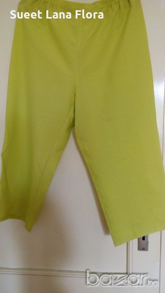 Летен резидав седем/ осми панталон, бг размер 50 , материя полиестер, напълно запазен, обиколка на талията при разпънат ластик 90 см, обиколка на бедрото 64 см, дължина от талия до края на крачола 80 см