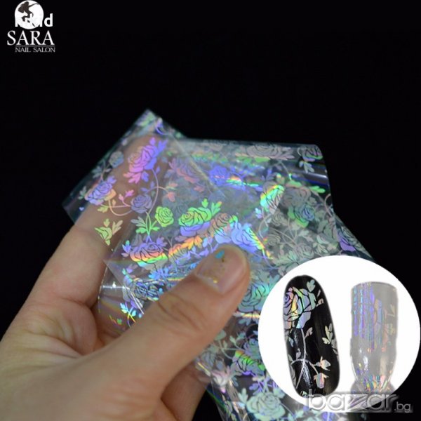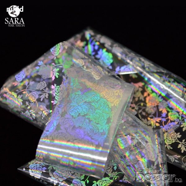 Рози холограм лазер трансферно фолио лента за нокти маникюр 100cmx4 → Обява 18814250