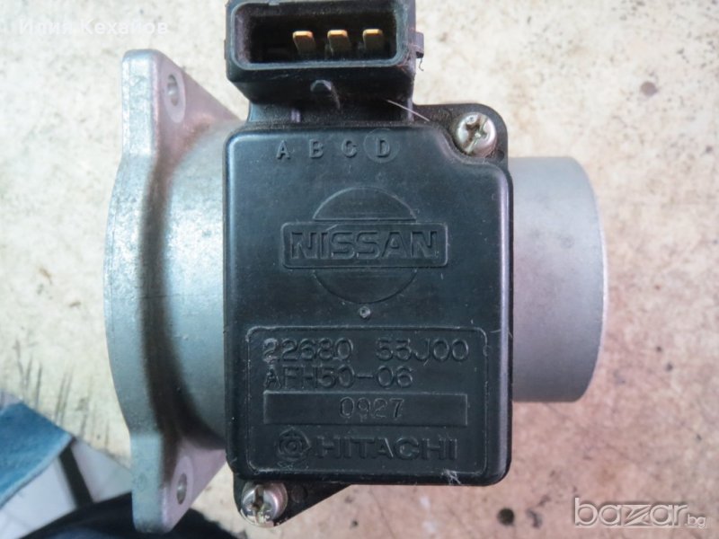 Дебитомер за NISSAN OEM MASS AIR FLOW METER 22680-53J00 HITACHI за Примера П 10- П11- 2.0 Бензин.Става и за Infiniti g-20,nissan nx sentra 2.0l.
