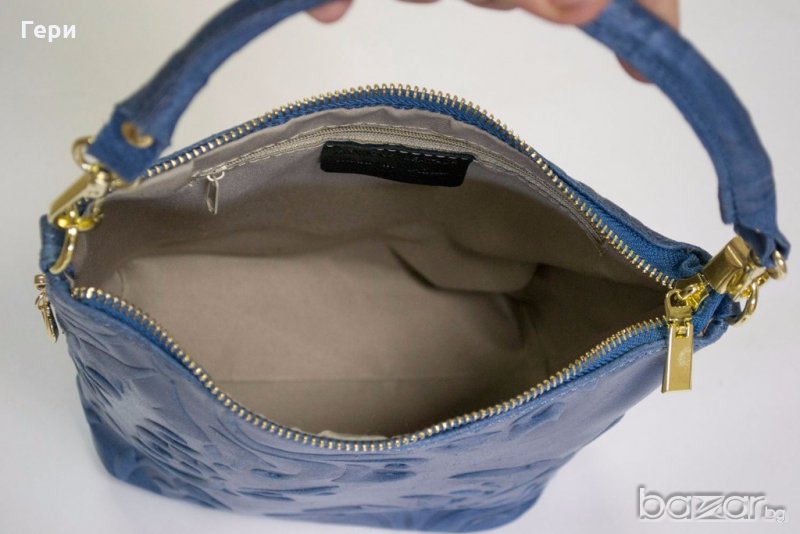 Естествена кожа, синя дамска чанта марка Giulia → Обява 18826261