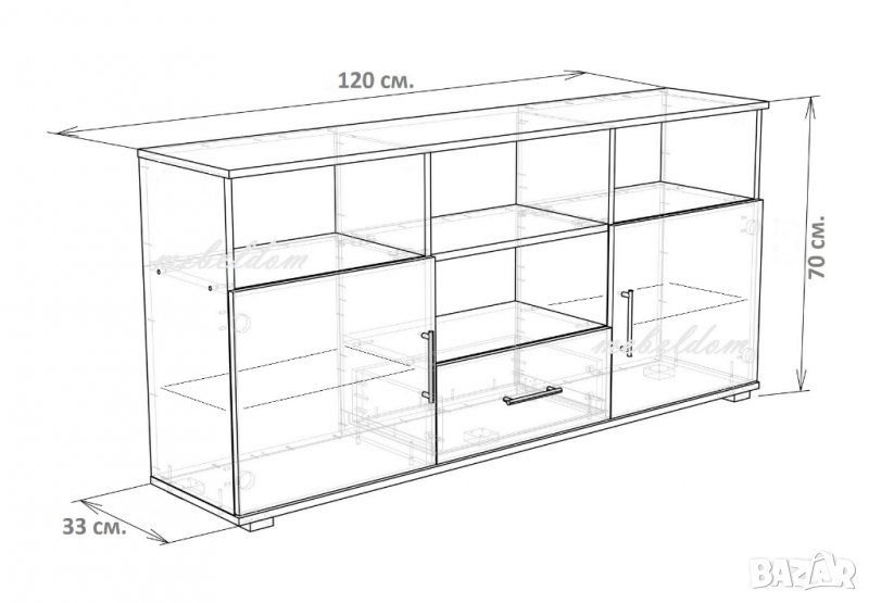 Тв шкаф 120см. с две врати и чекмедже(код-3179)