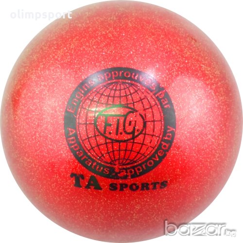 Топка за художествена гимнастика нова с брокатен ефект. Размер и тегло съгласно официалните стандарти на Федерацията по художествена гимнастика. Диаметър - 18-20 см; Тегло 0.405 г (+/- 5 г). Подходяща за тренировки и състезания. Меко покритие за по-удобен захват. Различни цветове. Материал - гума каучук