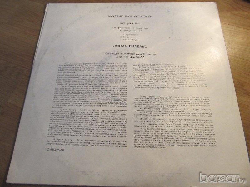 Грамофонна плоча Лудвиг ван Бетховен - Концерт номер 3 для ф-но с оркестром