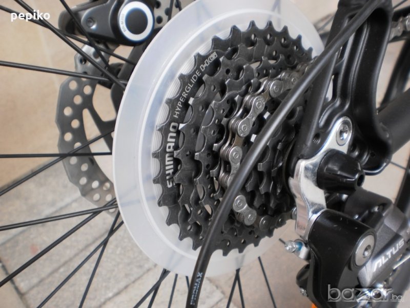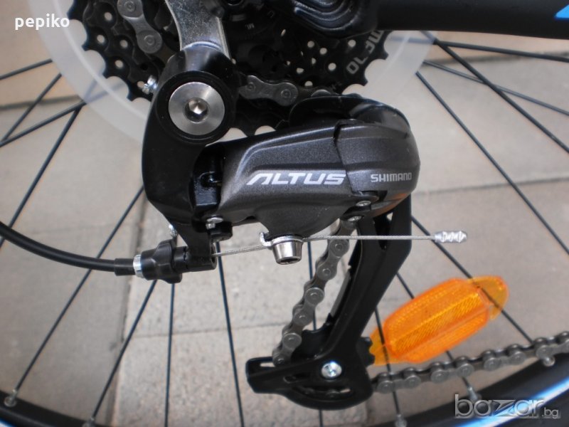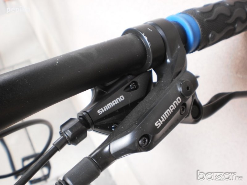 НОВ спортен МТВ велосипед BRAVE PMS 1 - 27.5 цола модел 2017г.нова технология суперлека алуминиева рамка 27.5 цола с 24 скорости,фиксирани превключватели SHIMANO ALTUS SL-M310 8 X 3,средно движение SHIMANO касета,алуминиеви курбели SHIMANO TOURNEY FC 171,алуминиеви педали,преден отклонител SHIMANO TOURNEY,заден отклонител SHIMANO RD M370 ALTUS-9-GEAR,предна и задна алуминиви главини с автомати за бърз монтаж и демонтаж задна SHIMANO FH RM33,предна SHIMANO HB RM33,задни венци с мегарънч SHIMANO CS-HG31 8SPIID,алуминиево колче и кормило LINK, спортна седалка SELLE ITALY,конусовидни чашки,преден амортисьор алуминиев регулиращ се,заключващ се SR SUNTOUR SF 14 XCT-MLO,предна и задна алуминиеви двойностенни усилени капли с двойни капси,емайлирани спици,гуми със спортен грайфер WTB NANO 2.1 X 27.5,размер на рамката 46 х 58 см. изключително лек 13.5 кг.цвят черен мат,лаково покритие на стикерите,прецизно превключване на скоростите,изключителен ход.