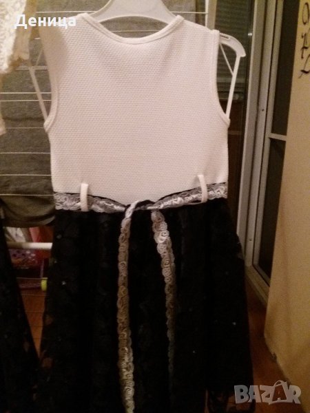 Роклята е обличана веднъж, на рожд. ни ден. Има и брошка цвете за болерото /снимала съм/. При интерес ще дам размери и доп. информация.