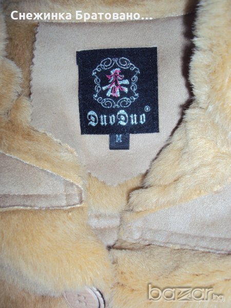 Дамско марково яке, 65 % Полиестер, 35 % Памук. Състояние до НОВО, защото е обличано до пъти. Топло и ефектно. Дължина на ръкава 61 см. Цяла дължина на якето 65 см. Гръдна обиколка 104 см. Цената не се коментира.