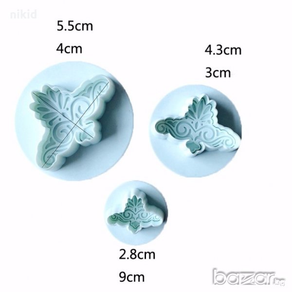 3 бр Бродерия мотиви пластмасови резци с бутало релефни украса сладки торта фондан тесто → Обява 18905335