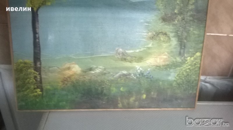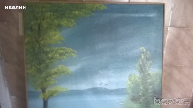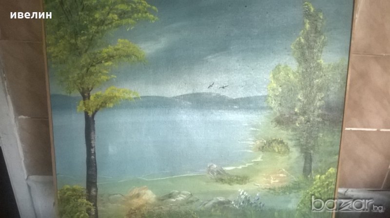 картина-пейзаж.масло на платно,дървена рамка с рамери 56см/49см.