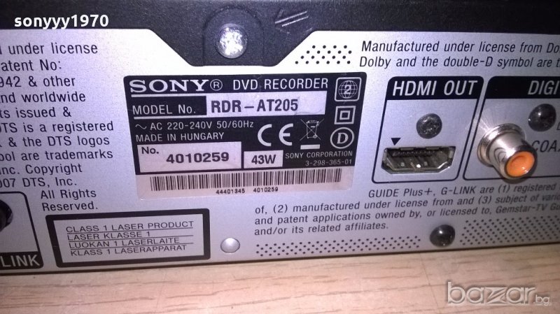 sony rdr-at205 dvd recorder hdd/dvd+remote-от швеицария