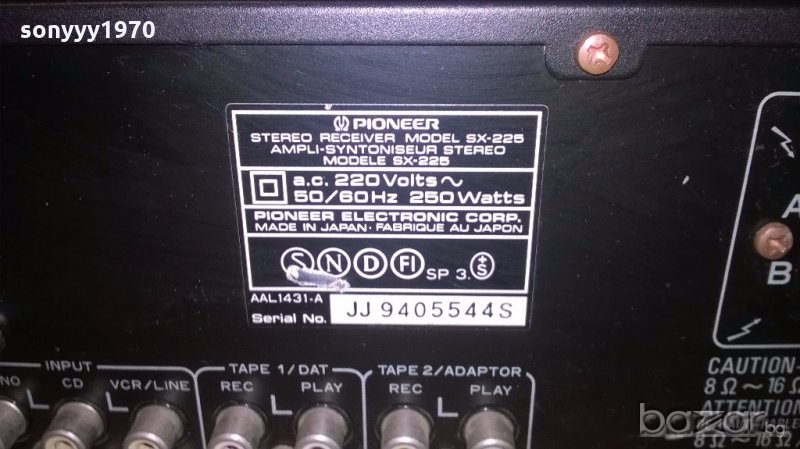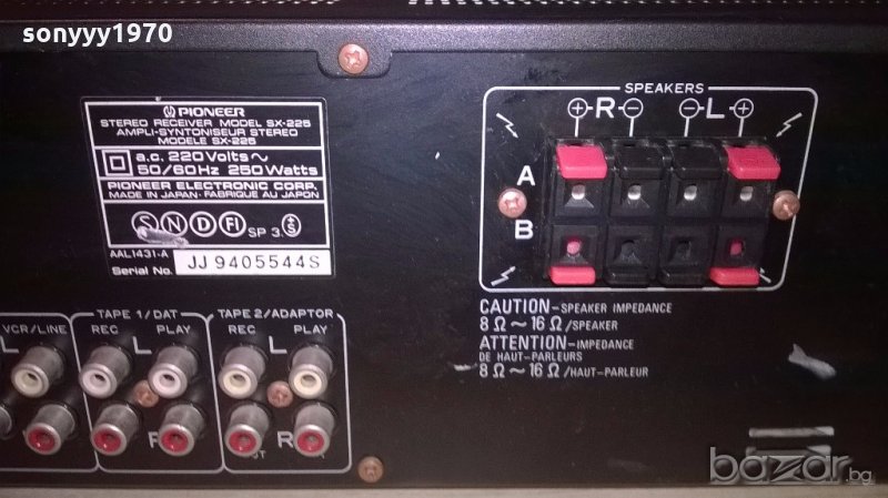 pioneer sx-225-receiver made in japan 250w-внос швеицария