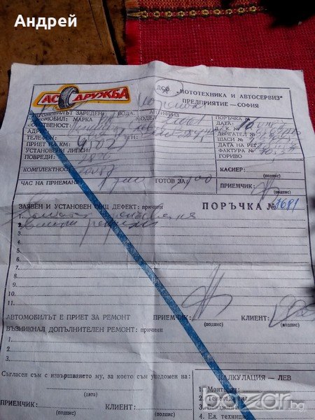 Автосервизен лист, снимка 1 - Антикварни и старинни предмети - 18918400 Автосервизен лист, снимка 2 - Антикварни и старинни предмети - 18918400 Автосервизен лист, снимка 3 - Антикварни и старинни предмети - 18918400 1/3