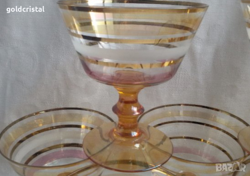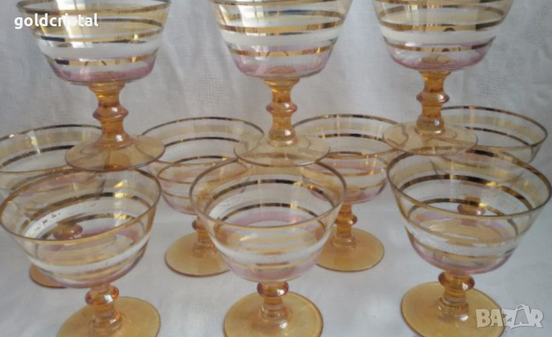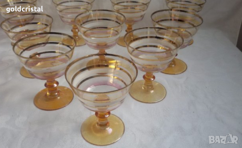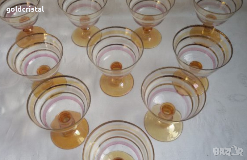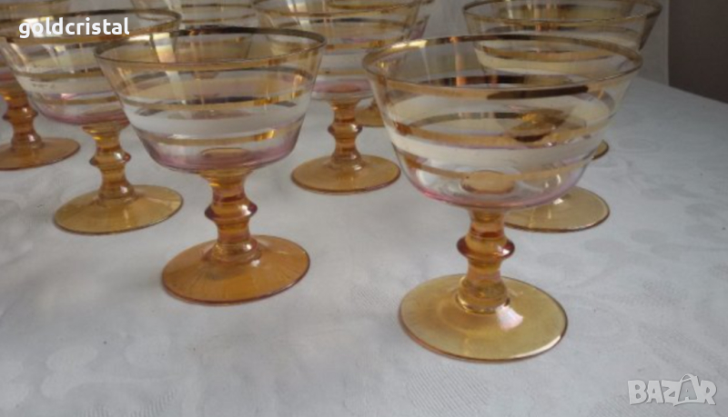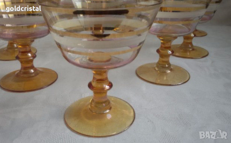 Ретро стъклени чаши цветно чешко бохемско кристално стъкло и златен кант чаши без забележки 6бр-90€ 5бр -48€ от които 2бр са с лека забележка само по белия кант никакви други забележки ретро арт декор винтидж колекция стари старинни антикварни предмети обзавеждане за дома арт декор винтидж колекция сервиз фкомплект сет лот цветно стъкло позлата златен кант стари антикварни предмети обзавеждане за дома и семейството подходящи за подарък за ценители и колекционери