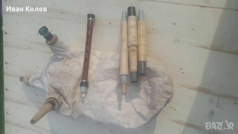 Професионална гайда.Пълен комплект, гайдуница, ручило, духало, главини и пискюни-страхотна изработка.Гайдуницата е "сол" и звучи много ясно, мяха не е много голям и това го прави подходящ за начинаещи и деца.