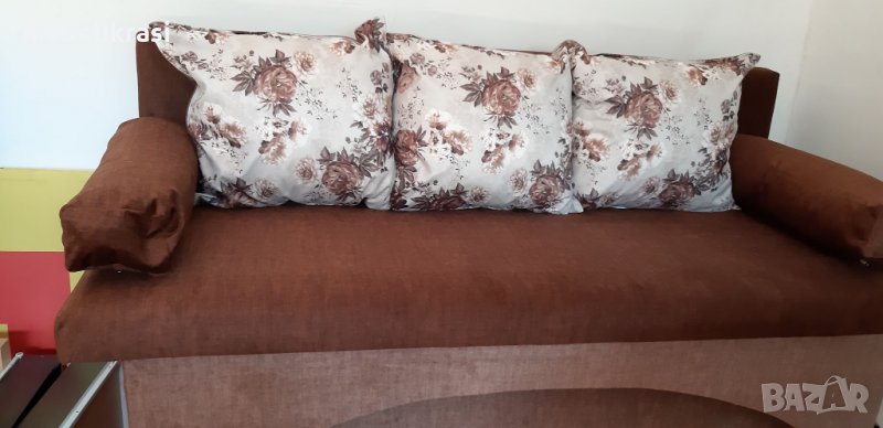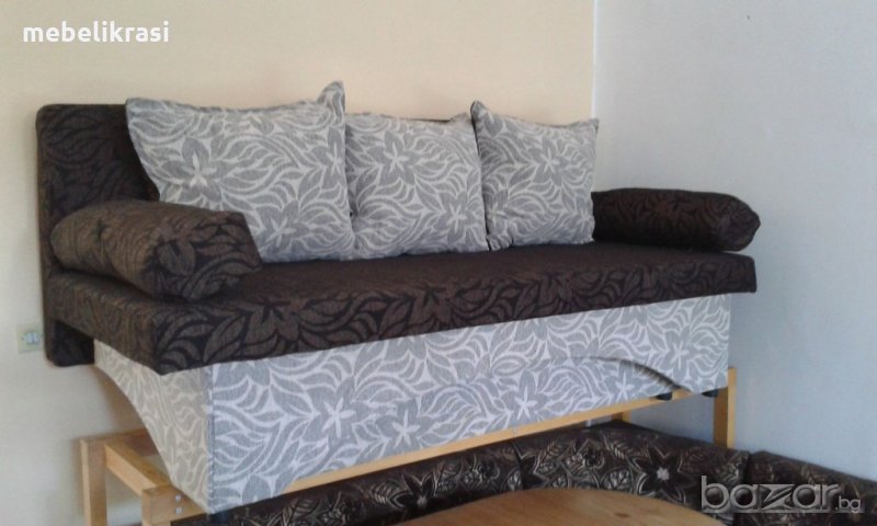 Диванът е удобен и функционален.Бързо и лесно се трансформира в легло с площ за сън-140/190см. Разполага и с ракла за съхранение на вещи.Изработено от масивна конструкция с ПДЧ плоскост и иглолистна дървесина,дунапрен и жакардова дамаска .Възглавниците са със сваляеми калъфи,за по лесна поддръжка.Можете да си поръчате дивана в различни цветови комбинации-богат избор на дамаски.Много добро решение за малки и средни жилища.