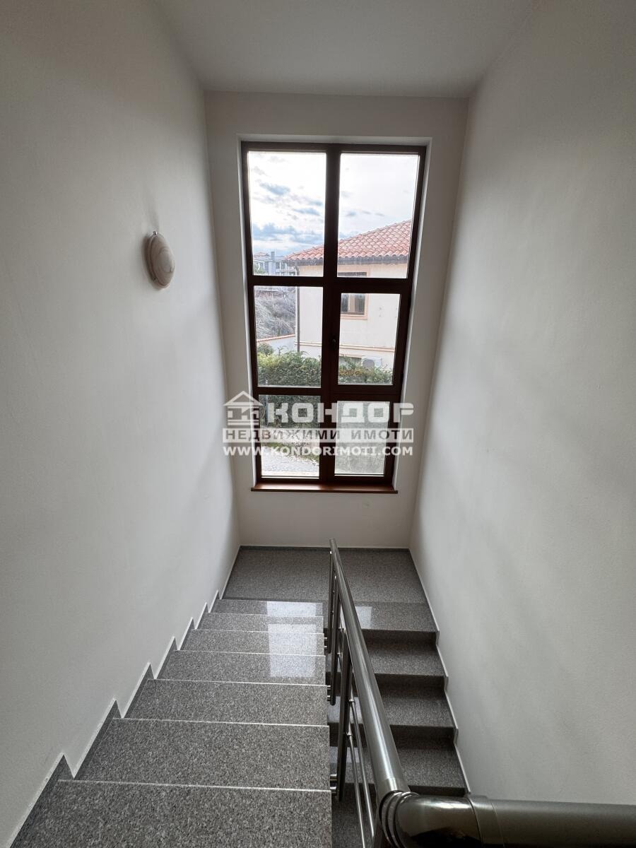 Врачански камък, керамика. Четирите еднофамилни къщи са еднотипни като схема. Делят обща инфраструктура и богато озеленен двор с кипариси, ориентирани са по различен начин в парцела. В ниската им част е разположен и светъл хол с трапезария и кухня - около 60 кв.м., сервизно помещение, перално, тоалетна и баня с душ кабина, два гаража с топла връзка. На второ ниво са разположени три спални с две луксозни бани, една от които е към родителската спалня. Към спалните има две тераси с гледка към Пловдив и Родопите без засенчване и други сгради отпред!!! Блиндирани врати, пет камерна дограма с рефлексно стъкло, подовете са с естествен дъбов паркет, естествен гранит, слънчеви колектори, камина. Отоплението е предвидено с локално парно, захранено с газов котел и камината, свързани автоматично един с друг като захранващи тела. Охлаждането е с климатици DAIKIN във всяка стая.Има поставени слънчеви колектори. Къщите по стар български стил имат чардак и барбекю. Цените са без ДДС!!!