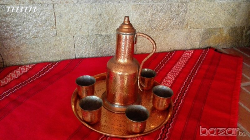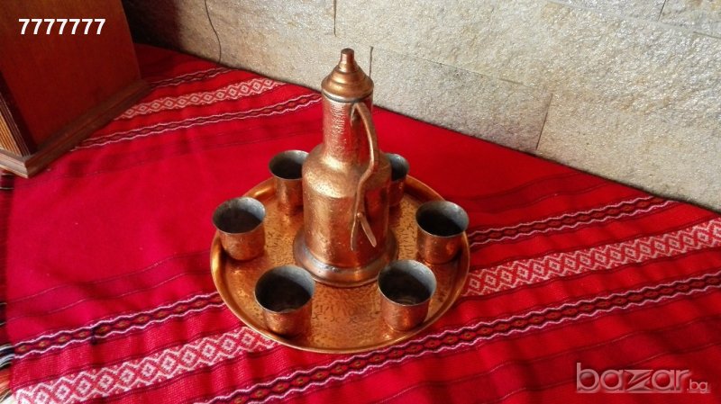 Кован меден сервиз за греена ракия, снимка 1 - Антикварни и старинни предмети - 18999419 Кован меден сервиз за греена ракия, снимка 2 - Антикварни и старинни предмети - 18999419 Кован меден сервиз за греена ракия, снимка 3 - Антикварни и старинни предмети - 18999419 Кован меден сервиз за греена ракия, снимка 4 - Антикварни и старинни предмети - 18999419 1/4