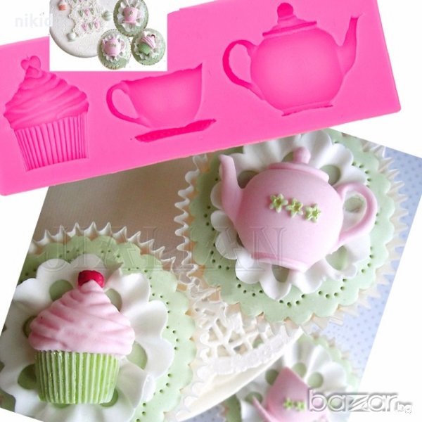 Сервиз кафе чай чаша чайник и мъфинка силиконов молд форма за декорация торта фондан шоколад и др → Обява 19012665