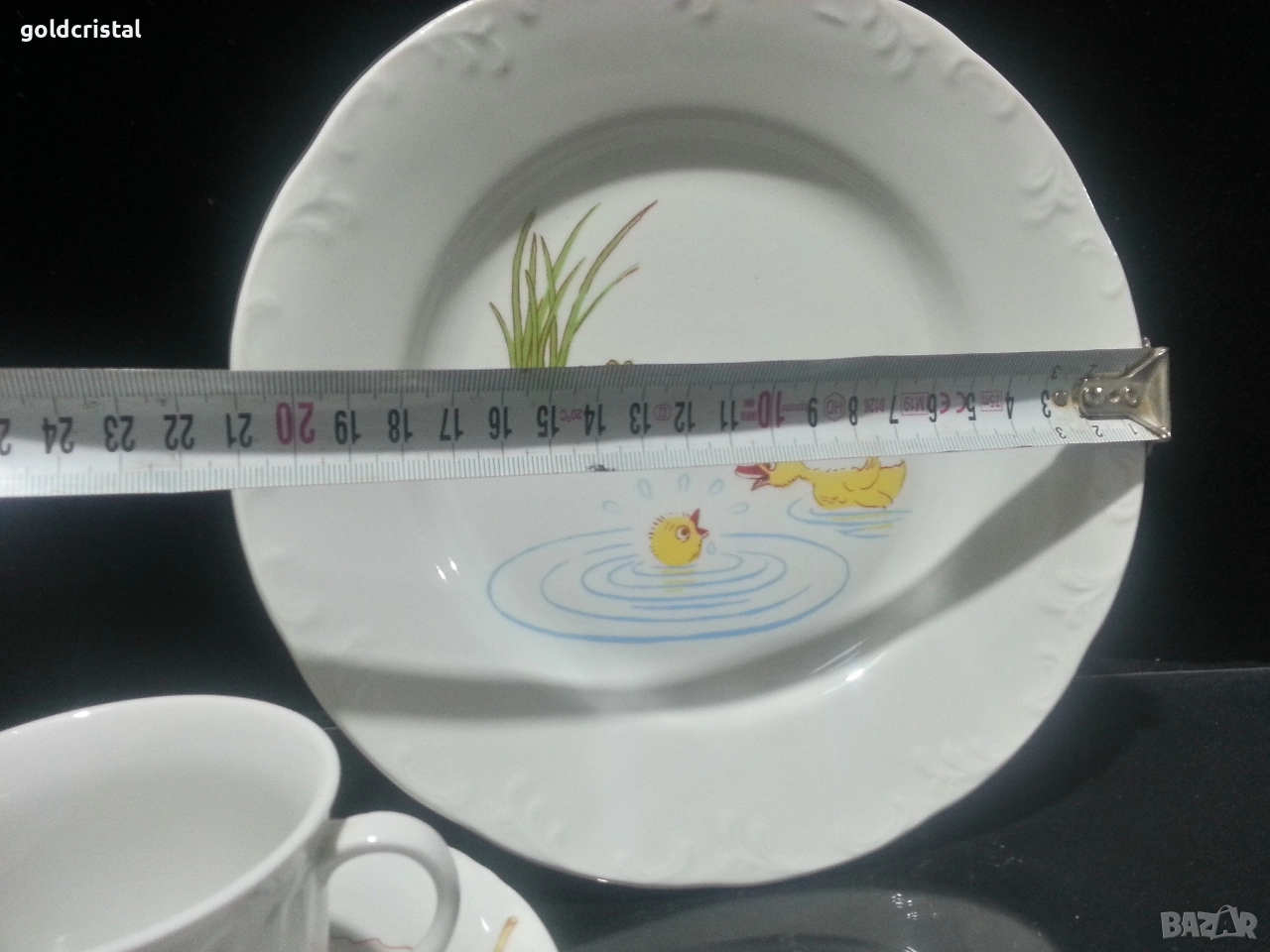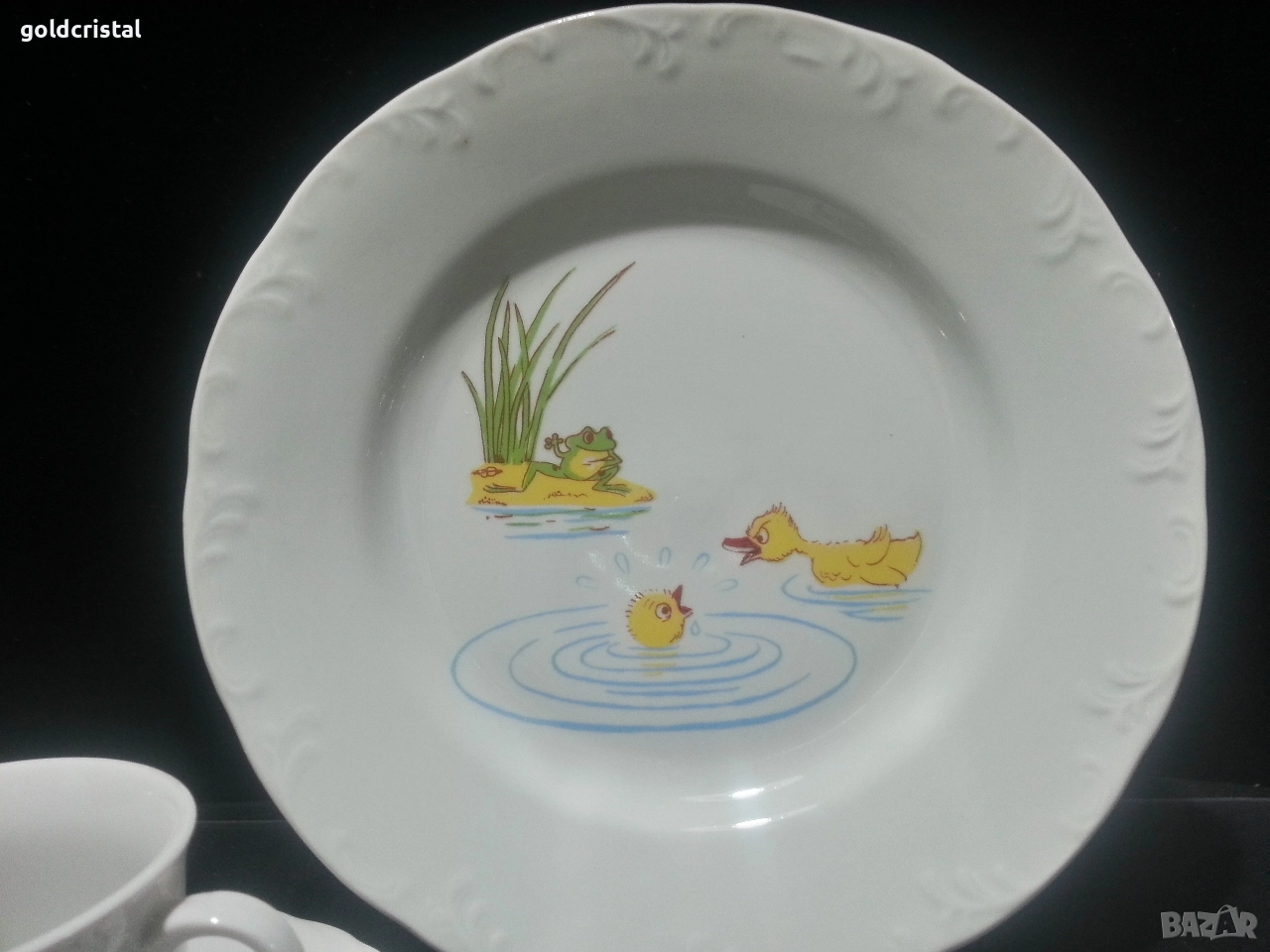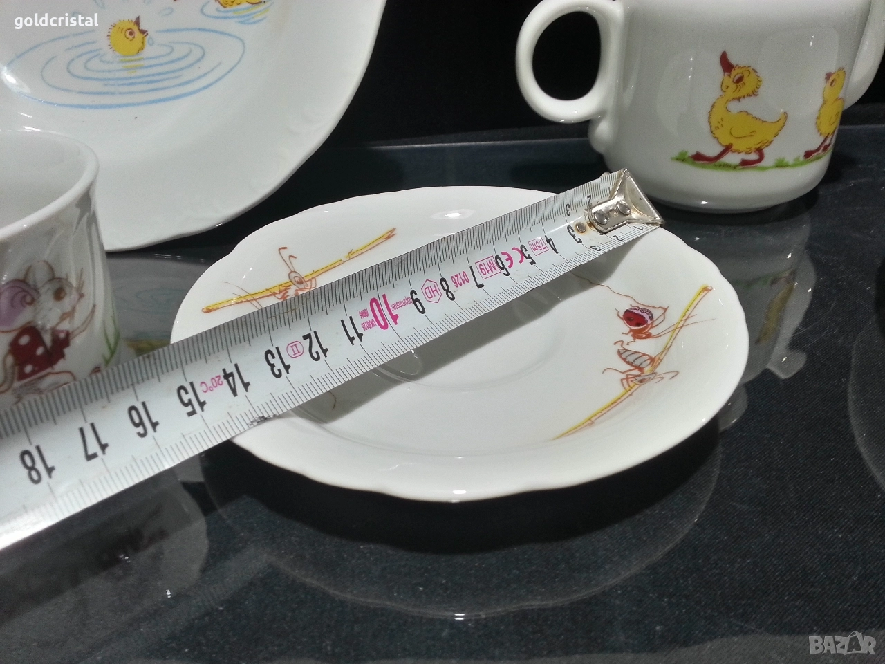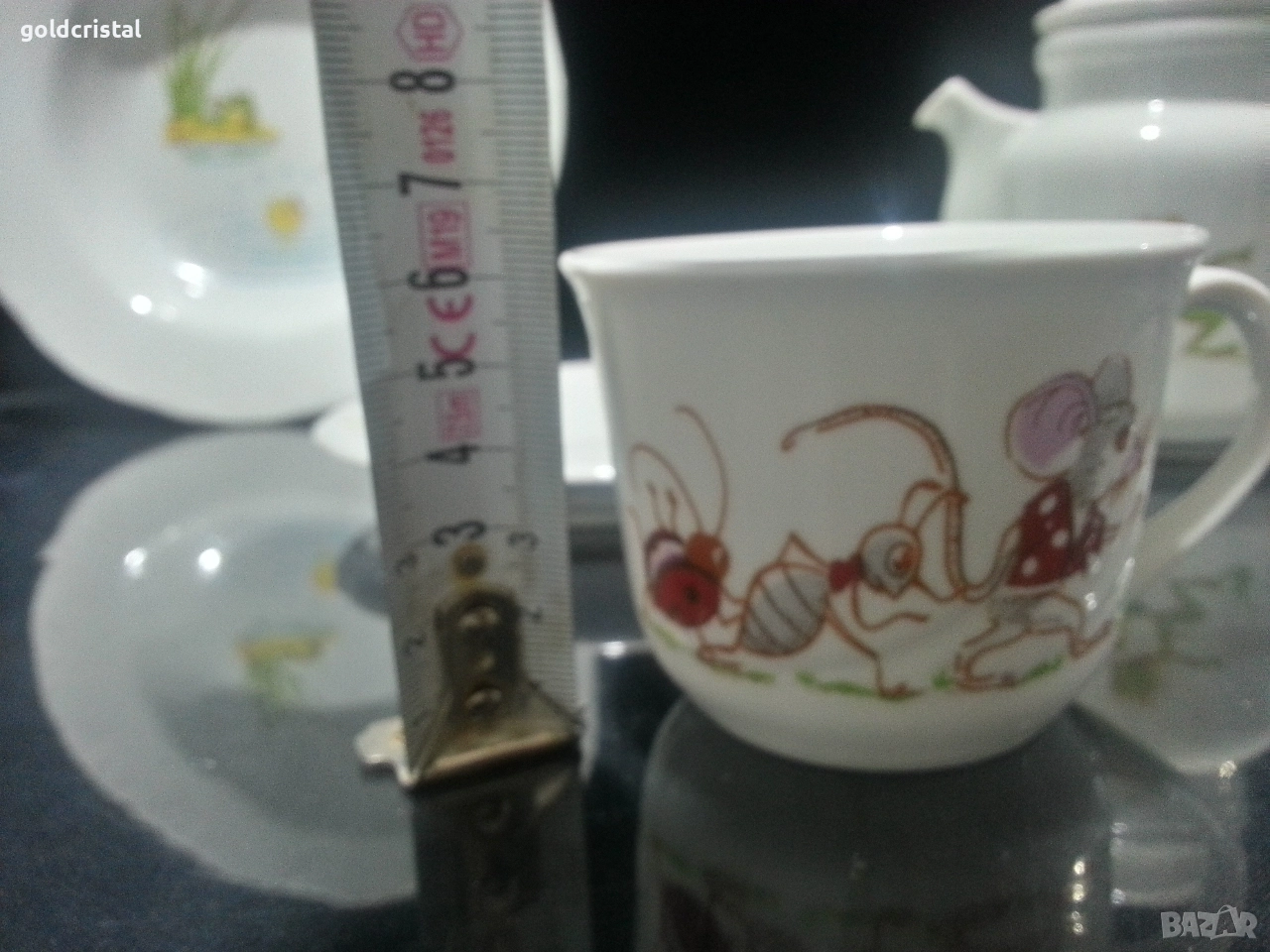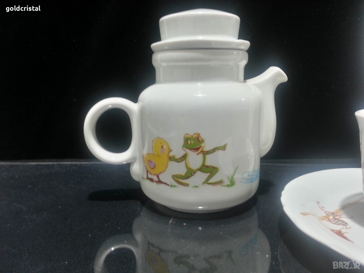 Стар български порцелан детски комплект чиния плитка чаша с чинийка и каничка сервиз комплект сет лот ретро арт декор винтидж колекция стари старинни антикварни предмети обзавеждане за дома и семейството подходящи за подарък за ценители и колекционери