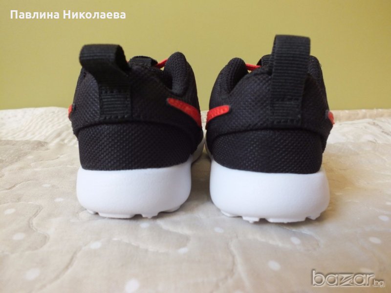 Продавам оригинални чисто нови /без кутия/ маратонки модел NIKE ROSHE ONE BEBE NOIR. Изключително стилни и красиви. Стелка Solarsoft и оребрена подметка за по-лесно ходене, осигуряващи висок комфорт на детското краче и защита от нараняване. Изработени от здрави синтетични материали, с високо качество и издръжливост при максимално проветрение на крачето. Готино съчетание на цветове-черно с червено. Изключително леки. Размер 21,дължина на стелката 11 см. Цена 55, намалявам на 45 лева