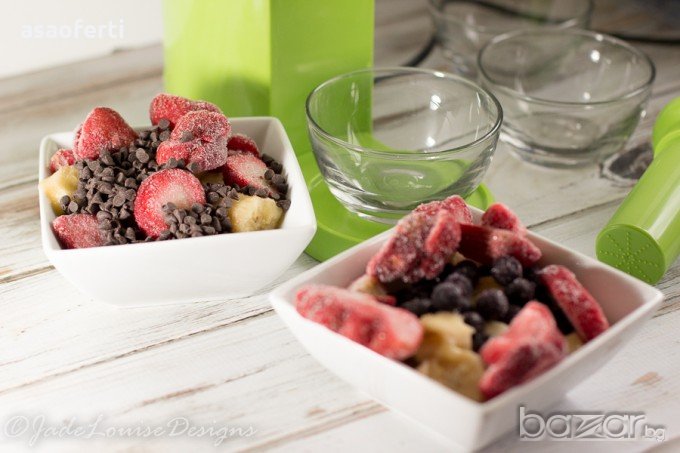 -Имате възможност за безкрайни комбинации от плодове за уникални десерти . Страхотни десерти стават с банани, ананаси, киви, плодове, манго, праскови, шоколад и други. Добавете любимият си замразен плод по желание и получавате 100% плодов десерт. Накрая го украсете с любимият си топинг.