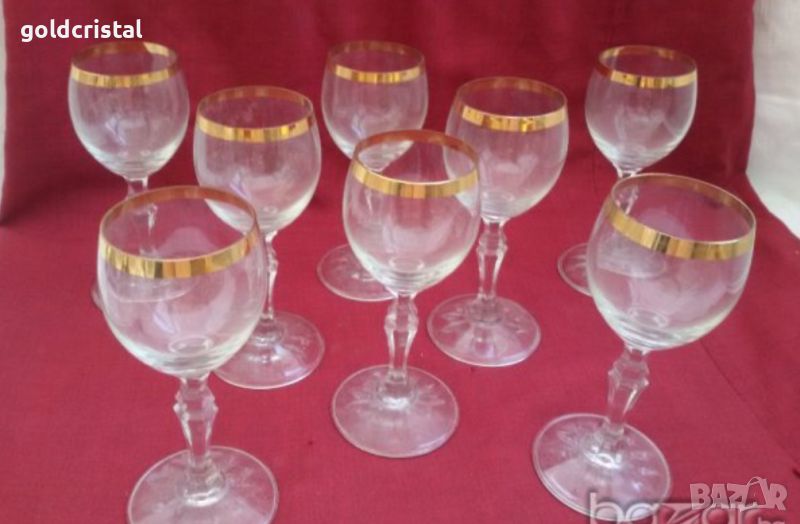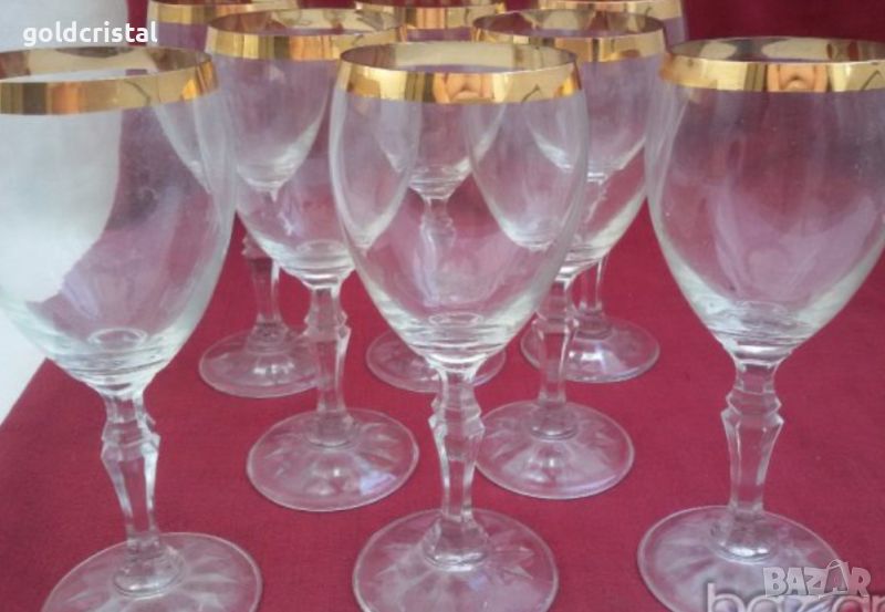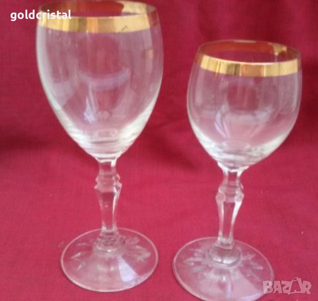 кристални чаши с перфектен широк златен кант за ракия 6бр-45€ и за вино 6бр-60€ неизползвани сервиз комплект сет лот стари старинни ретро арт декор винтидж колекция стари старинни антикварни предмети обзавеждане за дома и семейството подходящи за подарък за ценители и колекционери