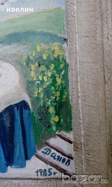 картина-натюрморт.масло на картон,подписана,датирана,дървена рамка.размери на рисунката 32см/50см.