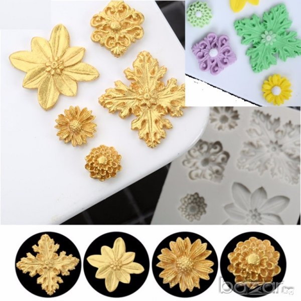 5 накит брошки цветя силиконов молд форма за декорация торта фондан шоколад и др → Обява 19043045
