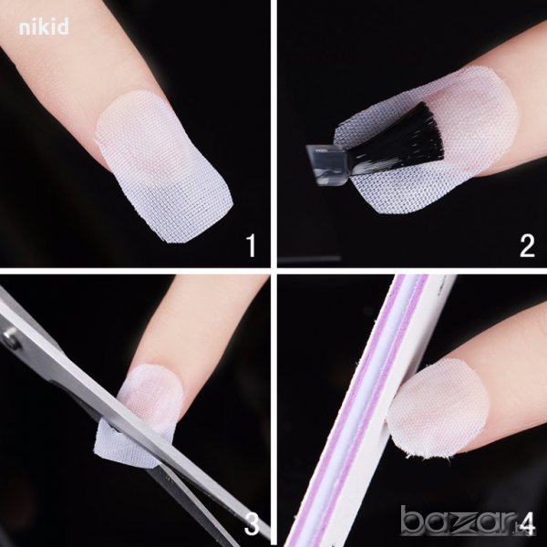 Копринена, здраво самозалепваща се лента за счупен или повреден нокът. Покрива, скрива и задържа увреденото място без да се забелязва, като позволява да нанасяте отгоре гел, гел лак, акрил или обикновен лак. Може да се ползва върху естествени или изкуствени нокти за допълнителна сила и защита. Копринени Фибростъкло Стикер За Залепване На Ноктите За Удължаване На Ноктите