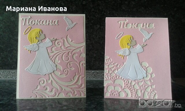 изпълнявам и в други цветове 1/бурканче за мед-12.00 2/бутилка- 12.00 3/свещ-15.00 4/папка за свидетелството-20.00 5/книга за пожелания-28.00 6/покана-2.50 / минимум 10 бр./ 7/кутийка за косичката/дървена, малка/12.00