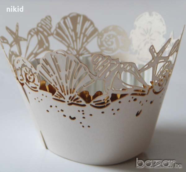 10 бр златисти или бели морски мотиви декори декорация за мъфини кексчета кошнички → Обява 19050936