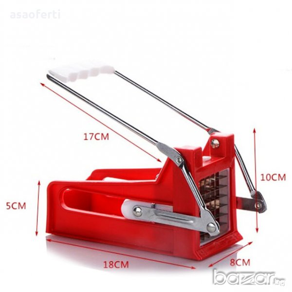 Насладете се на перфектни резенчета картофи с тази резачка за картофи . Тя може да се използва за рязане на всякакви зеленчуци, преди да се изпържат или опекат. С пресата се работи изключително лесно и удобно. Единственото, което трябва да направите е да поставите своя картоф и да натиснете капака надолу (посока картофа). Перфектните резенчета са вече факт и са готови, за да приготвите най-вкусните пържени картофки, които сте правили!