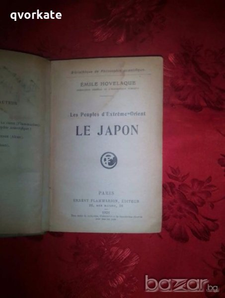 Le Japon - Les Peuples d'Extrême Orient-Emile Hovelaque,/Народите на далечния изток-Емил Ховелаг/1921г.,изд.Париж,на френски език,състояние:петно на предна корица и на първите десет страници,подчертавано с химикал-10.00лв.