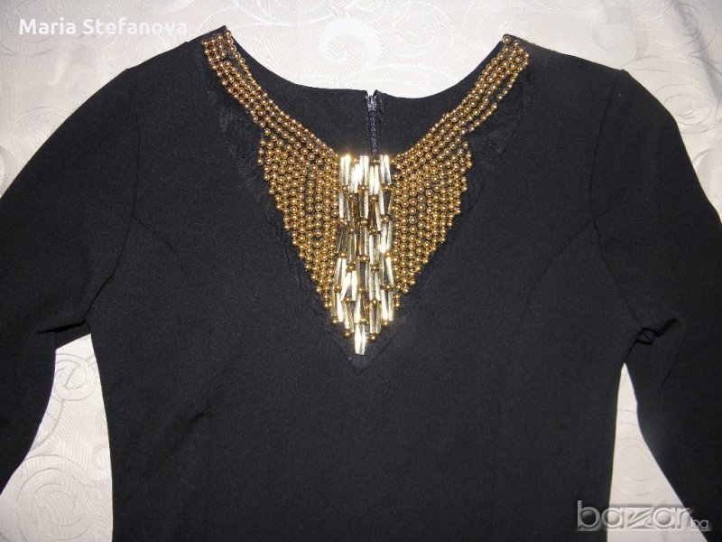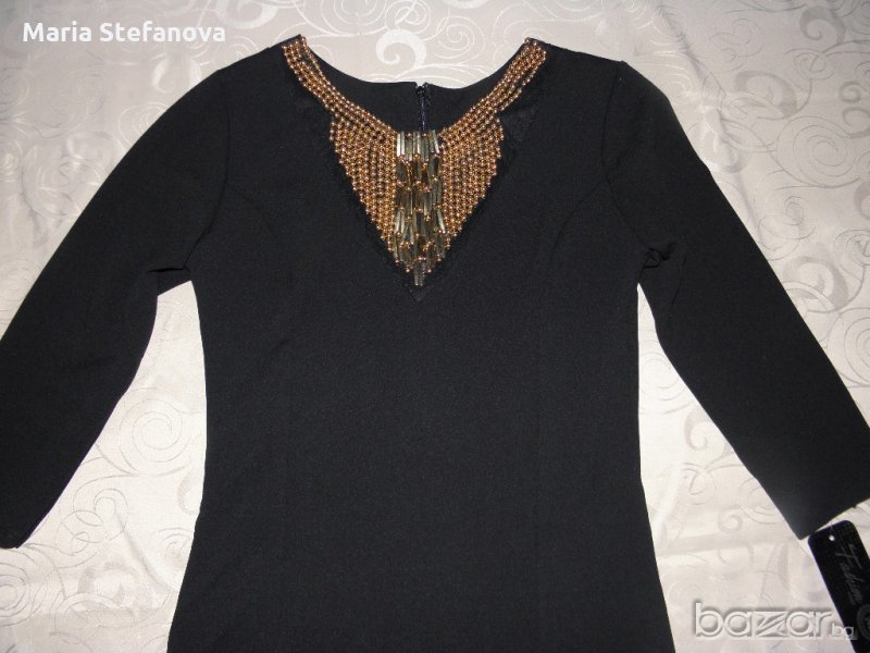Черна Италианска рокля с 3/4 ръкав и златиста декорация. Нова с етикет.Номер М.